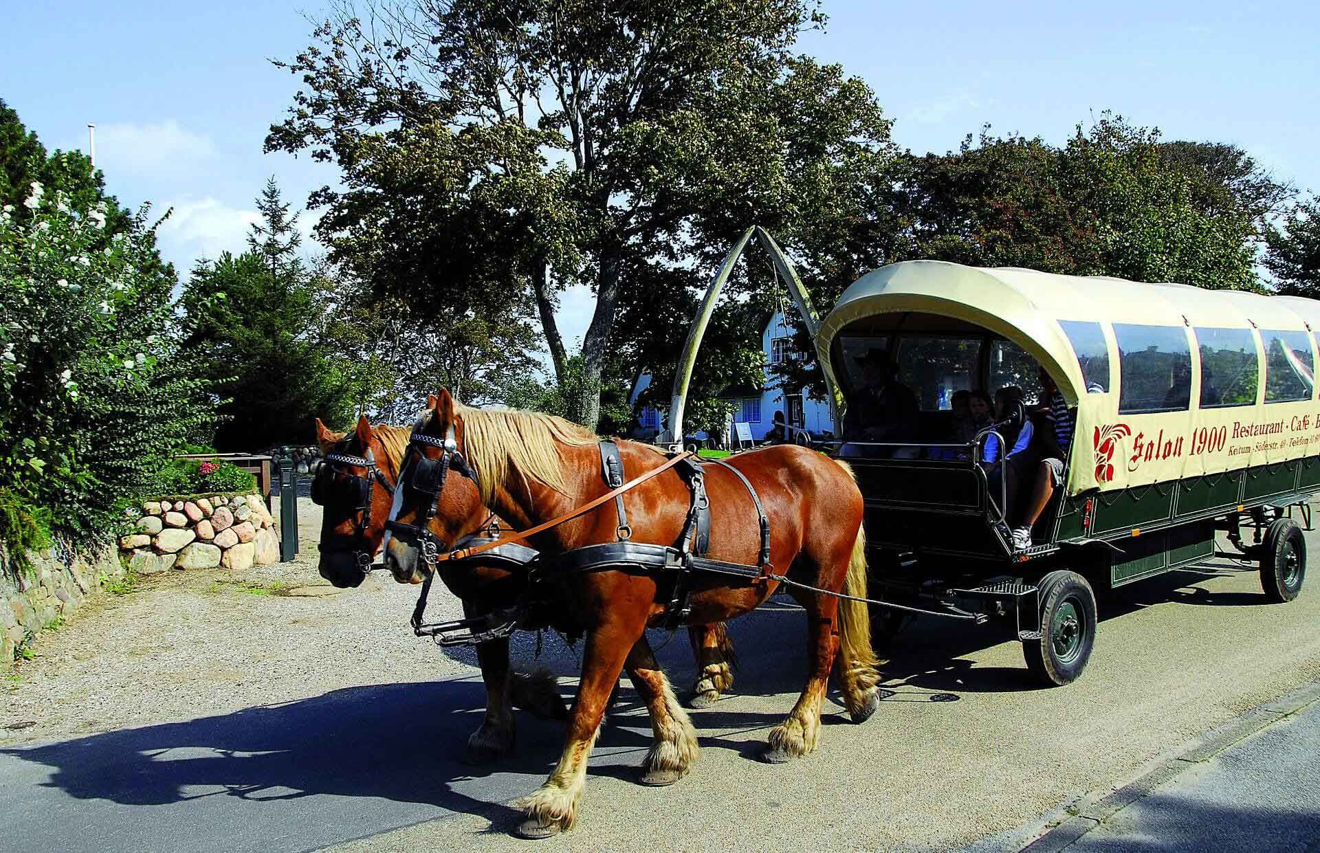 Während der Saison finden mittwochs und sonntags um 11.00 Uhr, 12.00 Uhr, 13.00 Uhr und 14.00 Uhr Kutschfahrten ab dem Parkplatz Ortseingang West in Keitum statt. Telefonische Reservierungen sind möglich.