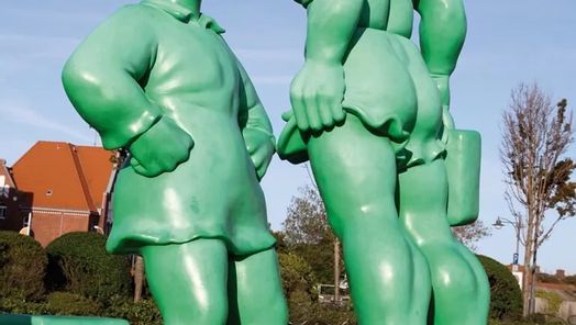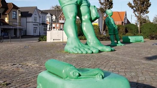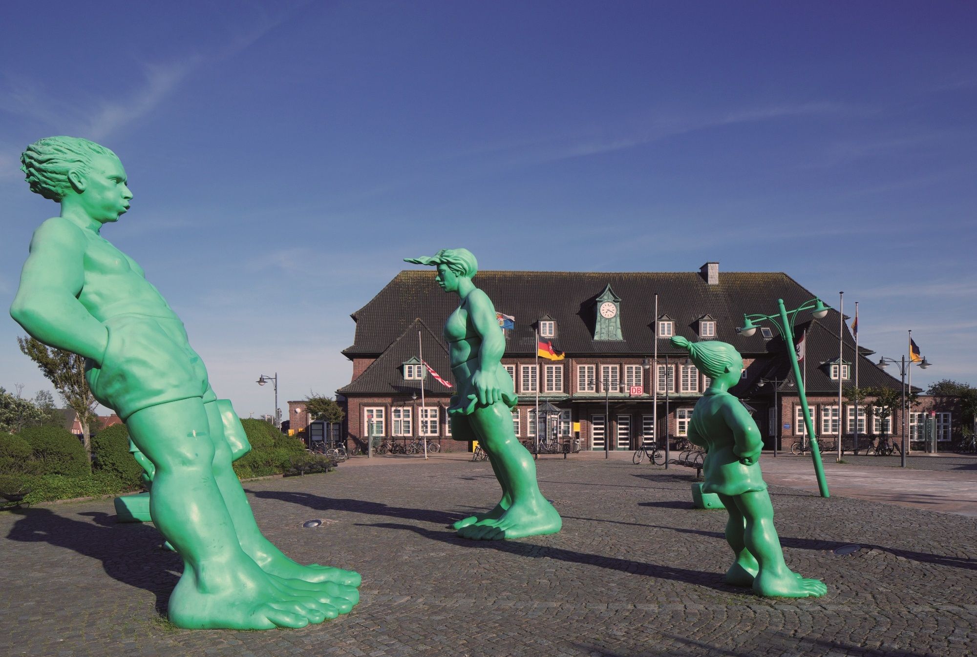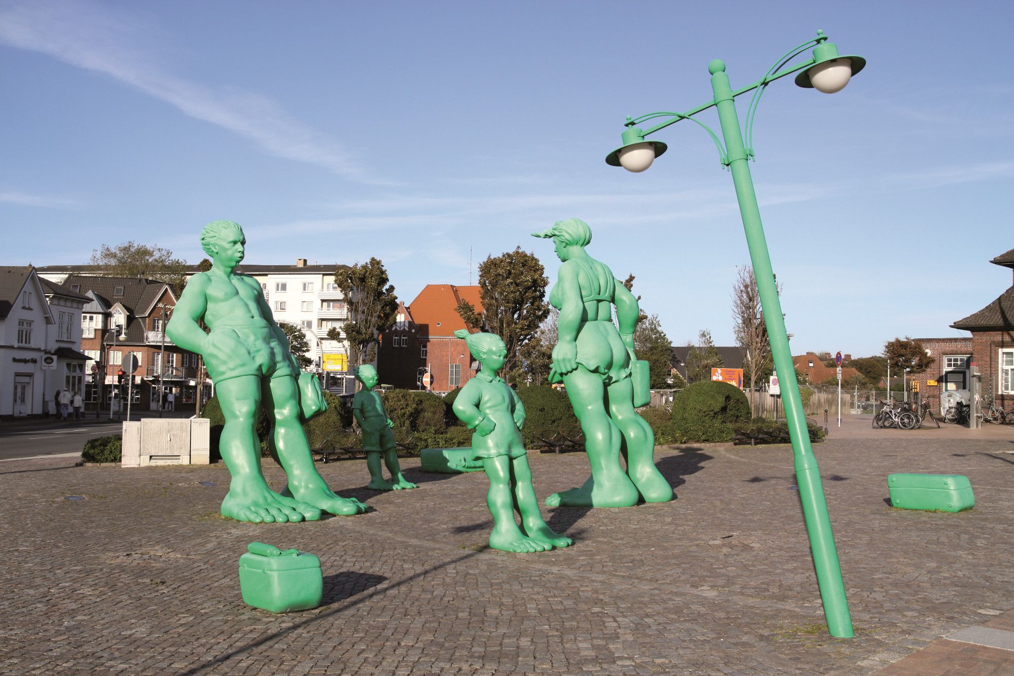 Die knallgrüne Familie wurde von dem Künstler Martin Wolke entworfen, der eine Ausschreibung zur künstlerischen Belebung und Veränderung des Bahnhofgeländes gewann. Die vier Meter hohen Figuren zieren seit dem Sommer 2001 den Bahnhofsvorplatz von Westerland.