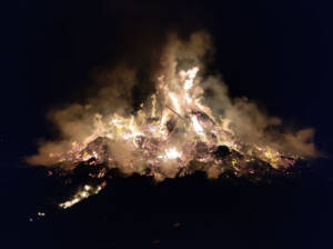 Als nach über einer Stunde endlich die Tonne fiel, wurde das Biikebrennen in Tinnum unter großem Applaus beendet. Das ist immer der Zeitpunkt, an dem man sich auf den Weg zum traditionellen Grünkohlessen macht. Die letzten Fackeln wurden in die halb heruntergebrannte Biike geworfen und alle waren glücklich, seit zwei Jahren endlich wieder ein richtiges Biikebrennen erlebt zu haben. Auf dem Rückweg sah ich in der Ferne die Feuerscheine der Archsumer und Westerländer Biiken leuchten und hatte das Gefühl, die gesamte Insel wäre für diesen Moment durch die Tradition der Biike vereint. Und das ist doch das wichtigste, oder?