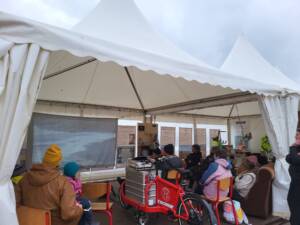 Als der Sturm nachließ, konnten ab 15 Uhr schließlich die Zelte wieder geöffnet werden. Besonders das Lastenrad Kino der Sylt Marketing GmbH zog trotz des noch ungemütlichen Wetters einige Besucher an, die sich im Zelt gemütlich niederlassen und den Dokumentarfilm „North of the Sun“ erleben konnten.