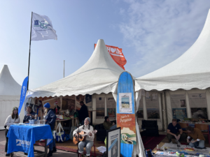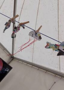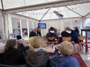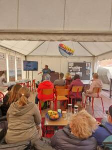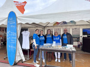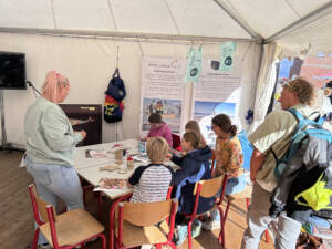 Veröffentlicht am: 13.11.2023 Gemeinsam nachhaltig – auf dem Windsurf World Cup Erlebnisse Nachhaltigkeit Neuigkeiten Über Sylt Na, denken Sie auch noch lächelnd an die 10 spannungsvollen Tage des Windsurf World Cups zurück? Wir auf jeden Fall! In unserem Nachhaltigkeitszelt südlich des Strandübergangs Strandstraße waren wir tagtäglich hautnah dran am Geschehen auf der Westerländer Promenade. Aber nicht nur am Surfstrand und auf der Promenade gab es viel zu erleben – auch in unserem Zelt war einiges geboten. Das große ISTS-Gemeinschaftszelt war als breite Doppelpagode kaum zu übersehen. Fiel der Blick dann auf die ungewöhnlichen Taschen, Beutel und Mäppchen der linken Zelthälfte konnte man nicht umhin, näher zu kommen und sich genauer umzusehen. Ähnlich farbenfroh wie die Hawaii-Hemden des vor Ort schwer beschäftigten Nähmaschinenprofis Andreas, präsentierten sich die Unikate in allen erdenklichen Farben, Formaten und Mustern. Hier konnten Besucher schnell ins Gespräch kommen und der Besonderheit der Täschchen und des Zeltes allgemein auf den Grund gehen.. Unter dem Motto gemeinsam nachhaltig sollten täglich wechselnd die unterschiedlichsten Nachhaltigkeitspartner des ISTS einen Raum bekommen, ‚ihre‘ Zelthälfte und somit das Programm für den Tag individuell zu gestalten.Da kein Tag dem anderen glich, konnten sich Wiederholungsbesucher immer wieder neu überraschen lassen und die bunte Vielfalt an Nachhaltigkeitsprojekten auf Sylt kennenlernen. Surfhouse Sylt Mit Pop-Up Nähwerkstatt und viel Motivation begleitete uns das Surfhouse Sylt während des gesamten Events. Dirk Effler und sein Team haben einiges an nachhaltigen Konzepten zu bieten. Mit dem Ziel eines Wassersports im Einklang mit der Natur informieren sie über richtige Verhaltensweisen, präsentieren die neuesten Trends, sind Begegnungsstätte und Repair Café – und zudem noch Upcycle-Experten. Denn die bunten, selbstgenähten Taschen und Mäppchen werden aus ausgemusterten Materialien wie Strandkorbmarkisen und Kitesurfsegeln hergestellt. So erhalten diese ein zweites Leben – und die Käufer einen nachhaltigen und praktischen Alltagsbegleiter. Gleich nebenan, in der rechten Zelthälfte, nahm zum ersten Wochenende das Mitmach-Programm richtig Fahrt auf: Kreativ-Wochenende … mit Freie Schule SyltManch einer mag nun denken, Upcycling – ja gerne, aber geht das auch ohne ausgediente Wassersportmaterialien? Hierzu bot das Team der Freien Schule Sylt einige inspirierende Möglichkeiten. Wer Kinder hat kennt das: In einem Moment ist noch alles gut, die Kleidung der Kleinen sauber und heil, im nächsten Moment findet das Toben und die Unversehrtheit der Hose ein plötzliches Ende. Doch deswegen gleich in die Tonne mit dem kaputten Teil? Viel zu schade! – Die Künstlerin Frieda Montefusco zeigte, wie man solche Kleidungsstücke reparieren kann, aber auch wie Kleidung, an der man sich schon sattgesehen hat, durch kleine Stickereien einen neuen Look bekommt. Während die Erwachsenen nähten, ging es am Basteltisch hoch her. Alte Kataloge und Zeitschriften wurden – sehr zur Freude der Kleinen – zunächst in viele farbenfrohe Papierschnipsel zerfetzt, welche dann auf altem Karton zu Quallen, Seepferdchen oder Haien zusammengeklebt und als Zeltdekoration aufgehängt wurden. Gerade die flatternden Medusen-Tentakel boten schon von Weitem einen tollen Anblick! Auch diejenigen, deren Geduld oder Fingerspitzengefühl nicht ausreichte, waren gut aufgehoben: Die Filmvorführung School of Trust gab spannende Einblicke in die Philosophie der freien Schule und eine alternative Perspektive zur Frage ‚Wie kann Lernen gestaltet werden, um den individuellen Bedürfnissen der Kinder und Jugendlichen und den Anforderungen der Zukunft gerecht zu werden?‘ Ähnlich und doch ganz anders gestaltete sich das Kreativ-Wochenende am darauffolgenden Sonntag… … mit der Schutzstation WattenmeerNadel und Faden verschwanden, stattdessen kamen Kleber und Buntstifte auf den Basteltisch. Aus Alltagsgegenständen wie Eierkartons oder Korken entstanden Krebse und Leuchttürme. Manchmal war es gar nicht so einfach, Löcher zu bohren und den Draht hindurch zu fädeln, zum Glück waren die Freiwilligen der Schutzstation Wattenmeer zur Stelle und halfen bei den Feinarbeiten.In einer Sandkiste hatten sie außerdem allerlei Strandfunde vergraben, die es auszubuddeln und zu bestimmen galt. Was genau man da in der Hand hielt, war oft sehr rätselhaft. Mal eine eigenartige Muschelform, mal bunte Plastikfäden oder seltsame schwarze Gebilde – mit Tablet und BeachExplorer App konnte der Sache auf den Grund gegangen werden und Schwertmuscheln, Dolly Ropes und Rochen-Eikapseln als solche identifiziert werden. Neben gebastelten Kunstwerken und Wiederverwertungsideen konnten Besucher viel Wissenswertes rund um das Wattenmeer und die große Bedeutung des Naturschutzes für diesen einzigartigen Lebensraum mitnehmen. Eine andere Perspektive auf Sylt entdecken … mit dem Alfred-Wegener-InstitutWer Montag morgens an der Promenade entlang schlenderte, dessen Blick blieb unweigerlich an dem Glasbehälter auf dem Hochtisch hängen… Ein echter Seestern?!Gleich daneben konnten Miesmuscheln und Strandseeigel in provisorischen Aquarien aus nächster Nähe bestaunt werden. Ob Seespinne, Schwimmkrabbe oder Strandkrabbe – dem ungeübten Auge fiel es schwer, die Meeresbewohner fehlerfrei zu benennen. Nur gut, dass gleich fünf Wissenschaftler des AWI bereit standen, um alle Fragen zu beantworten. Auch Vorträge standen auf dem Programm: Es ging um die Entstehung des AWI und vor allem darum, wie die „Forschung vor der Haustür“ aussieht – Wie genau läuft der Forschungsalltag vor Ort in List ab? Wann, wie und wozu werden z.B. Wasserproben genommen? Anschauliche Plakate und Flyer zeigten, welche Tier- und Pflanzenarten bisher in unser Wattenmeer eingewandert sind; die Forscher erläuterten aber auch, was ihre Forschungsergebnisse für Küstens