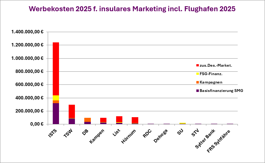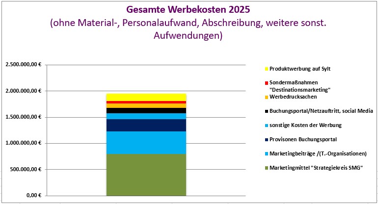 Hierin sind u.a. Werbekosten i.H.v. T€ 1.798 enthalten (ohne Material-, Personalaufwand, Abschreibungen und weitere sonstige Aufwendungen). Beinhaltet darin sind T€ 381 für Marketingbeiträge an Tourismusorganisationen.